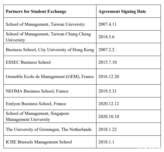 SOM has a long tradition of actively developing strategic partnerships and collaborations with prestigious universities throughout the world. SOM sponsors high-level academic exchanges, joint programs, international conferences and other international activities. Student exchanges are encouraged to cultivate talented students with global vision.